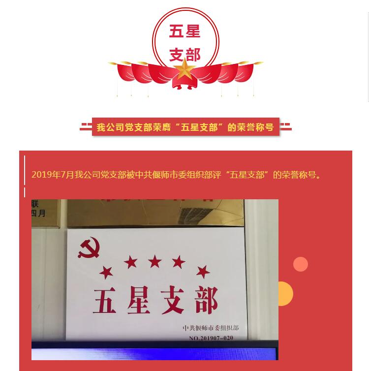 热烈祝贺我公司党支部荣膺“五星支部”的荣誉称号