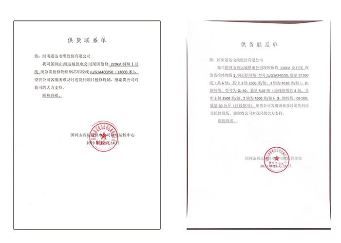 12月13日17时50分,受近期冻雨天气影响,运城市垣曲县4条高压输电线路出现故障,造成全县范围停电,生产生活用电受到影响。灾情一出,立刻引起了社会各界的关注 。公司领导在收到国网山西运城供电公司发出的供货联系单后,迅速通知相关部门,要求各部门同事积极配合,克服困难,保障救灾物资及时送达抢修现场。