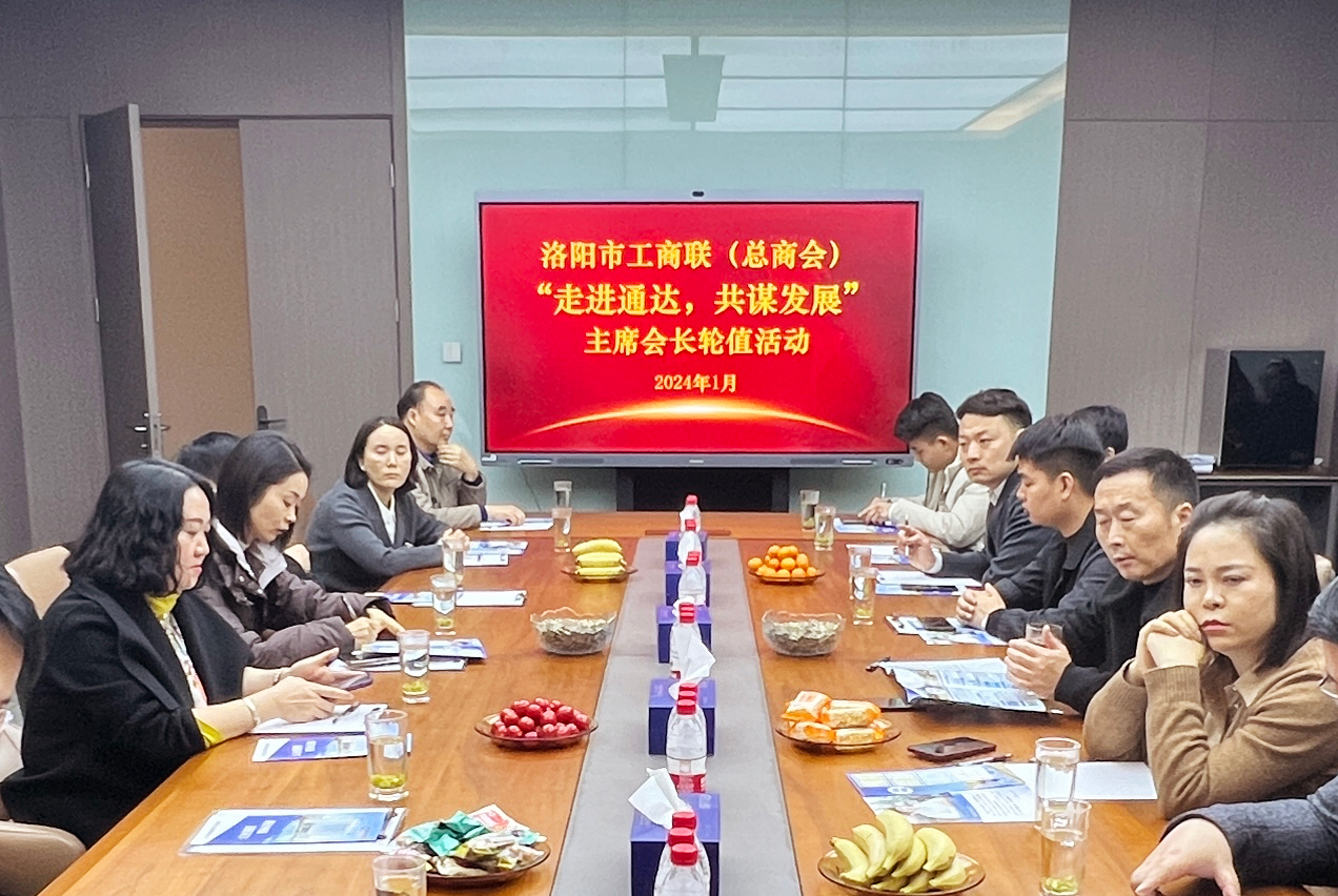 1月10日,洛阳市工商联(总商会)组织开展了“走进快猫官网WWW在线观看,共谋发展”主席(会长)轮值活动。市工商联党组成员、秘书长龚本法,部分市工商联(总商会)副主席、副会长,市工商联执常委,年轻企业家和青年创业者代表20余人参加活动,公司董事长马红菊陪同。