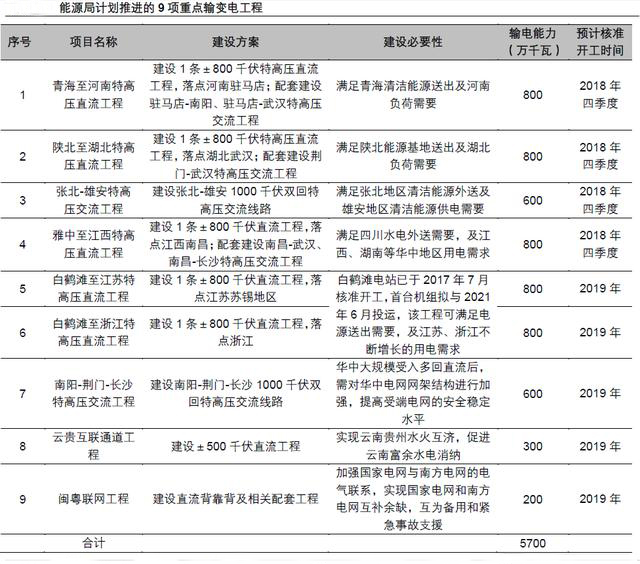 【概要描述】9月7日国家能源局印发《关于加快推进一批输变电重点工程规划建设工作的通知》,通知指出为加大基础设施领域补短板力度,发挥重点电网工程在优化投资结构、清洁能源消纳、电力精准扶贫等方面的重要作用,加快推进白鹤滩至江苏等9项重点输变电工程建设。2014-2015年,在大气污染防治背景下,四交五直特高压工程获得核准;本次七交五直特高压工程如若顺利推进,我国特高压发展将呈现又一核准高峰。具体来看,五条特高压直