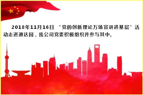 为深入学习宣传贯彻习近平新时代中国特色社会主义思想和党的十九大精神,让党的创新理论成果深入人心,切实把党的十九大精神落到实处,我公司党委积极配合上级党组织的活动,积极组织公司全部党员参与学习党的创新理论。