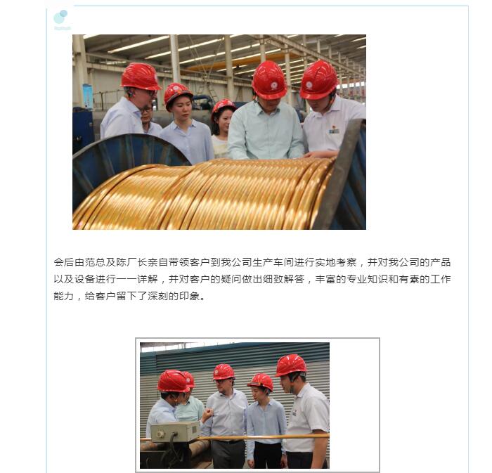 5月21日上午,德国联邦铁路公司(公司简称DB)客户莅临我公司参观考察,我公司销售总经理范云生以及生产厂长陈少国亲自接待客户,并与客户进行友好洽谈。