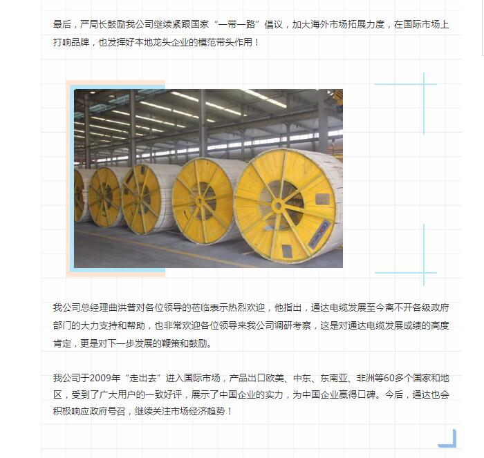 严局长仔细询问了我公司海外市场开拓、经营模式的各种情况,了解公司在资金、出口等方面困难问题,并对我公司今后海外出口业务发展提出一些指导性意见。他说,在“一带一路”大趋势的影响下,市委市政府高度重视企业发展,必将竭尽全力给予支持和帮助。严局长同时也明确指出市商务局将继续做好有