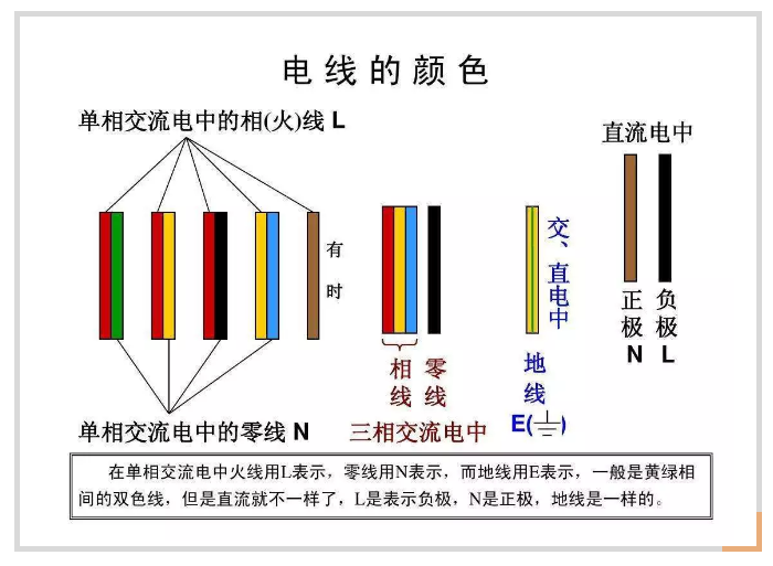 【概要描述】☞黑色装置和设备的内部布线。 ☞ 棕色直流电路的正极。 ☞ 红色三相电路和C相;半导体三极管的集电极;半导体二极管、整流二极管或可控硅管的阴极。 ☞ 黄色三相电路的A相;半导体三极管的基极;可控硅管和双向可控硅管的控制极。 ☞ 绿色三相电路的B相。 ☞ 蓝色直流电路的负极;半导体三极管的发射极;半导体二极管、整流二极管或可控硅管的阳极。 ☞ 淡蓝色三相电路的零线或中性线;直流电路的接地中线。 ☞