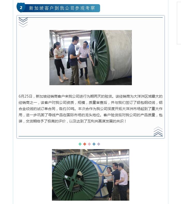 【概要描述】6月24日,智利客户莅临我公司进行参观和考察工作。在双方交谈中,公司领导就公司发展历程、生产实力、发展规划、产品销售以及典型合作客户等进行了详细介绍。随后双方达成一致合作意见。客户对我公司的实力,生产设备,检测设备,产品质量,都给出高度评价。期待以后双方进行持久深入的合作。